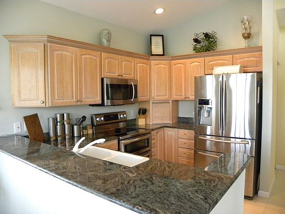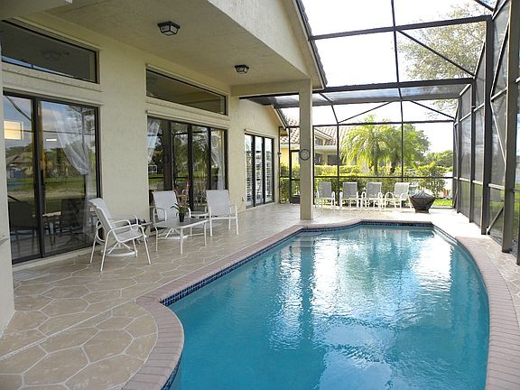 Beautiful lakefront home with vaulted ceilings and lots of windows providing tons of natural light. Renovated kitchen and baths - kitchen features granite and stainless steel appliances - a KitchenAid double oven & range and Samsung refrigerator, microwave and dishwasher, granite in all baths. Newer roof, freshly painted interior, plantation shutters, a new electrical panel and hurricane shutters for windows and doors. Lawn maintenance and basic cable included in HOA dues. Guard gated neighborhood is pet friendly and has beautiful pool, 2 tennis courts and a playground.