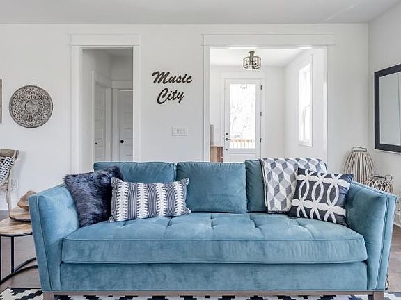 Built in 2018-2019, this fully furnished house with beautiful interior design is now available with a prime location in the heart of 12South. Just a block away from the main 12South corridor filled with shops, bars, restaurants, and more. Enjoy being tucked at the end of a cul-de-sac following a long day and having a comfortable night's sleep. The house has modern furniture and is equipped with lots of amenities and boasts stylized shared living spaces (living room/dining room/open kitchen). Living room is appointed with a queen sofa bed. The open-space kitchen with dining room table has commercial grade appliances and a centerpiece island. A separate laundry/dryer area also is on premises. Two parking spots are located at the back of house, and street parking is also available. Bedrooms: Every stylized bedroom room has a premium mattress and a dedicated bathroom and shower. Each room is also appointed with blackout curtains and a Smart TV for unwinding at the end of the day. 2 King size Beds, 1 Queen Bed, and 1 Day Bed with Trundle (2 singles). The neighborhood is family-oriented with a playground across the street and a school next door for children of elementary age. The house is ideal for families, educators, students, ex-patriates or people new to Nashville who are getting a feel for the Music City - this is the place to start out! Note: Cats and small dogs under 25 lbs are allowed for an additional $50/mo per pet; no more than 2 pets allowed. -- Owner pays for trash and sewer; large appliance maintenance (excluding TVs). -- Tenant is responsible for landscaping, water, gas, electric and cable, and any repairs to furniture.
