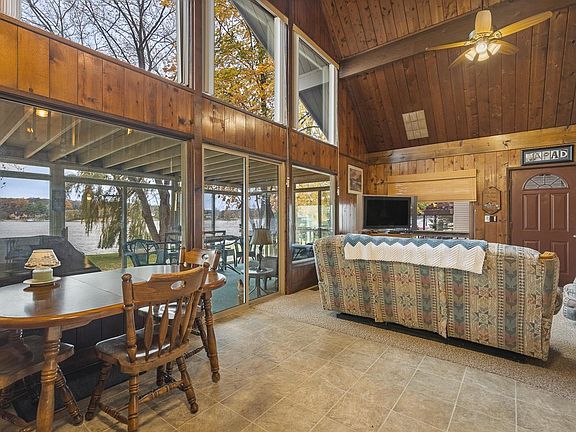 Beautiful LAKEFRONT home! Enjoy the holidays at the lake this year in this move-in ready 4 bedroom/2 bath home. Whether you are looking for a vacation home or forever home, this is the one. The new owners will enjoy vaulted ceilings with a wall of windows showcasing perfect views of the lake. The open layout features a sizable living room adjacent to the open kitchen with gorgeous, maple kitchen cabinets. A sun room with floor to ceiling windows is the perfect place for entertaining, and a new addition in 2008 added two large bedrooms, a full bath, and a main floor laundry room on the main level. The spacious family room in the loft is a fun spot for games or for watching the boats roll by. It's an easy walk to the home's 60 feet of lake frontage where you'll find a large, aluminum boat dock, patio, and boat lift. The boat and golf cart are negotiable as well as the contents of the home. 285 acre, fully stocked, spring-fed lake, a swimming pool, two marinas, two beaches, 24-hour security, and so much more! HOA fees are only $932/year!