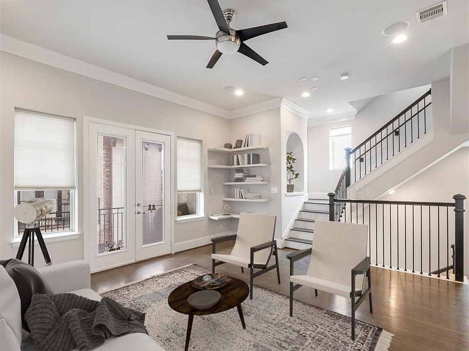 Stunning 3 bed, 3.5 bath, and 2 car garage home in Midtown. This well maintained home is in a gated community and minutes from Downtown, Museum District, & Medical Center with easy access to major highways. The home has a bedroom on the first floor with attached full-bath & walk-in closet, the second floor boasts an open floor plan with huge windows, a gorgeous island, stainless steel appliances, in-ceiling customer home theater speakers, a balcony that can be accessed from the living area, dry bar, and dining room. The third floor has a second bedroom with attached full-bath & walk-in closet, utility room and a spacious primary bedroom with huge windows, customized walk-in closets, huge spa-like tub and double vanities. The inside of home has a new coat on the walls and the second wood flooring has been sanded and stained.