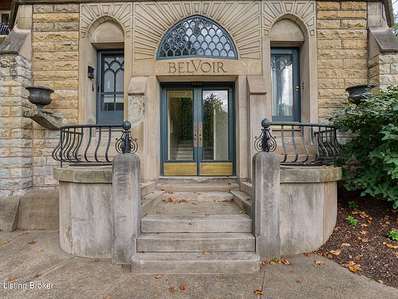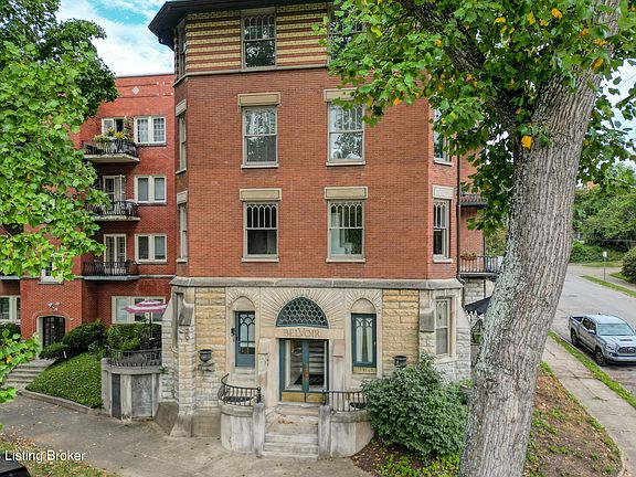 The spacious dining room has a chandelier and barrel ceiling adorned with intricate plaster design. The family room is spacious with a cool cove ceiling, built-in shelving and cabinets that includes space to accommodate a flat screen TV and a cozy remote control fireplace. Two balconies offer a personal retreat amidst the treetops. One, complete with a ceiling fan, provides a perfect spot to relax and take in the serene sights and sounds of Willow Park where summer concerts and art fairs take place. These balconies are extensions of your living space, inviting you to enjoy the outdoors without leaving the comfort of your home. Other desirable features are hardwood floors, an abundance of large windows and ceiling fans. There is additional dedicated storage space on the top floor and first come first serve off street parking. Within walking distance lies Bardstown Road, a hub of activity where fine locally-owned restaurants and stores beckon. This neighborhood is not merely a place to live; it's a community brimming with life and culture.. Don't miss the opportunity to make this unique and enchanting 2 bedroom second floor condo your very own. Schedule a viewing today and embark on a journey through time and style.