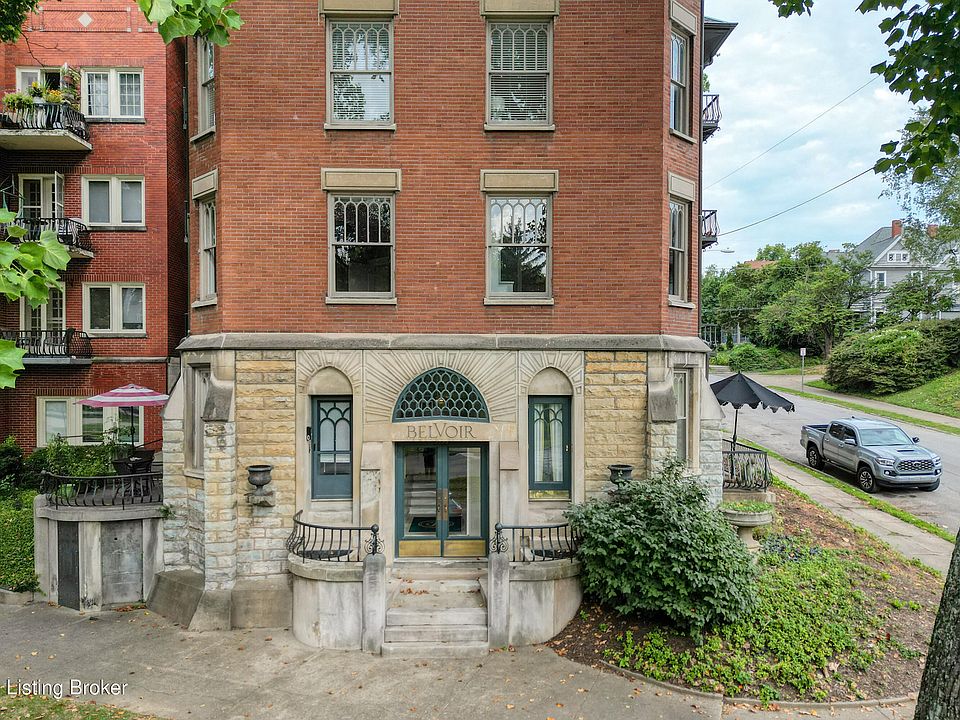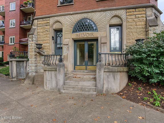 Nestled in the heart of the cherished Cherokee Triangle, your new condo is more than a home; it's a living testament to Louisville's history and a treasure trove of character and charm. Located within the iconic Belvoir Building, this residence has an enduring legacy that's woven into its very walls. This unit harmoniously marries the allure of old world charm with the conveniences of modern living. The updated kitchen features a gas stove, built-in microwave, built-in shelving, honed granite counters with white tile backsplash, pull-out spice drawer, and a built-in bench. Additionally, a new stacked washer and dryer bring convenience to your daily routines. The bathroom has been thoughtfully updated with stylish white tile, marble floors, and glass shower enclosure with a rain shower head.