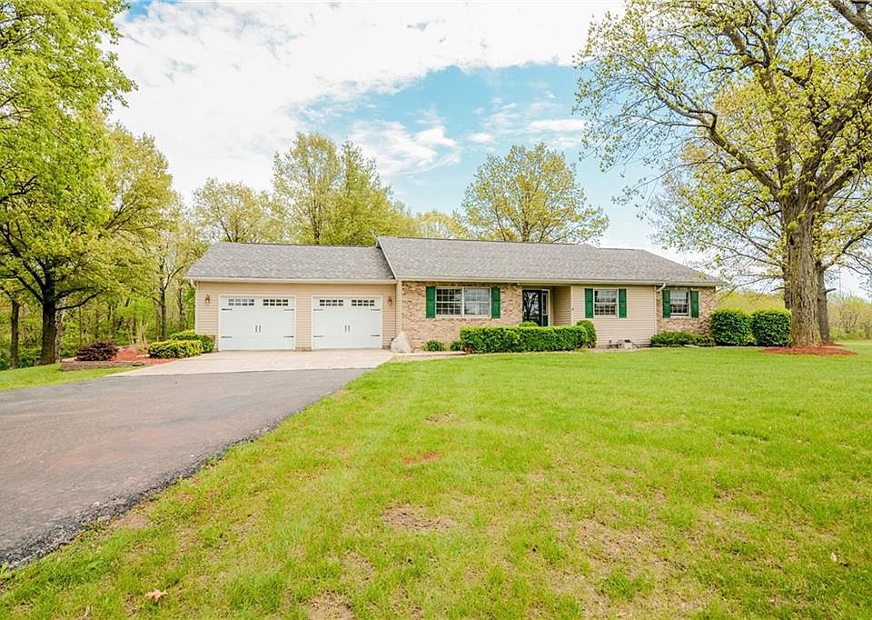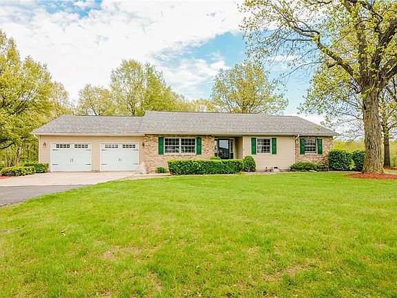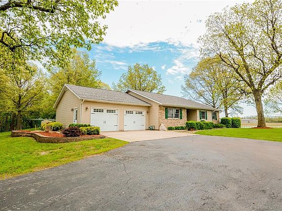 Take the gorgeous drive home up the winding drive way with pond view on 4.13 acres. Stamped concrete surrounds this designer brick home with 2 car attached garage. Home has 4 bedrooms and 2 full bathrooms. Four season room with skylights and views to wow. Home has beautiful wood work throughout, hardwood floors, cathedral ceilings and eye catching views. New roof in 2019. Step outside and relax around the Koi pond. 24x30x12 Morton pole barn with porch, slider doors, electricity and water. Home also includes a 16x12 shed. Don't miss your chance on this private retreat, schedule a showing today!
