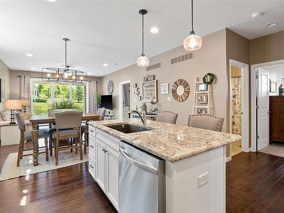 SHOWINGS START SATURDAY! OPEN HOUSE ON SUNDAY SEPTEMBER 12 FROM 2pm-4pm Village of Provence is a community where snow removal and mowing are all provided! Welcoming entry, fabulous kitchen and main floor laundry! The open floor plan is great for entertaining especially with the covered patio, and it backs to common grounds! Notice the coffered ceiling in the master bedroom and the custom walk in closet! The lower level has been professionally finished and includes a kitchenette, dining/game area, tv room, bedroom with walk in closet & full bath. Every aspect of this home is well planned and beautifully finished. Washer, dryer, grill, & frig stay. Location is convenient to hwy 370 and old town St. Charles.