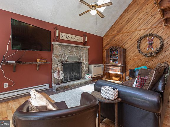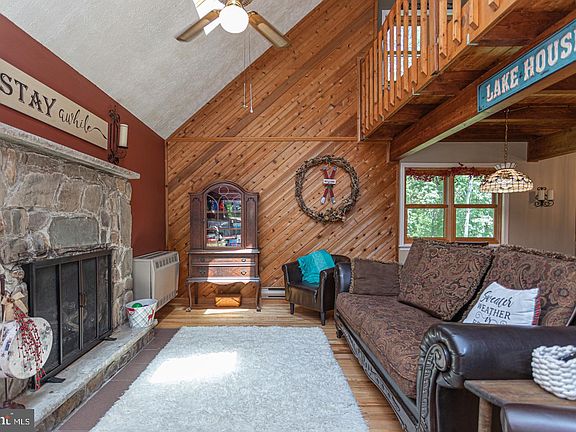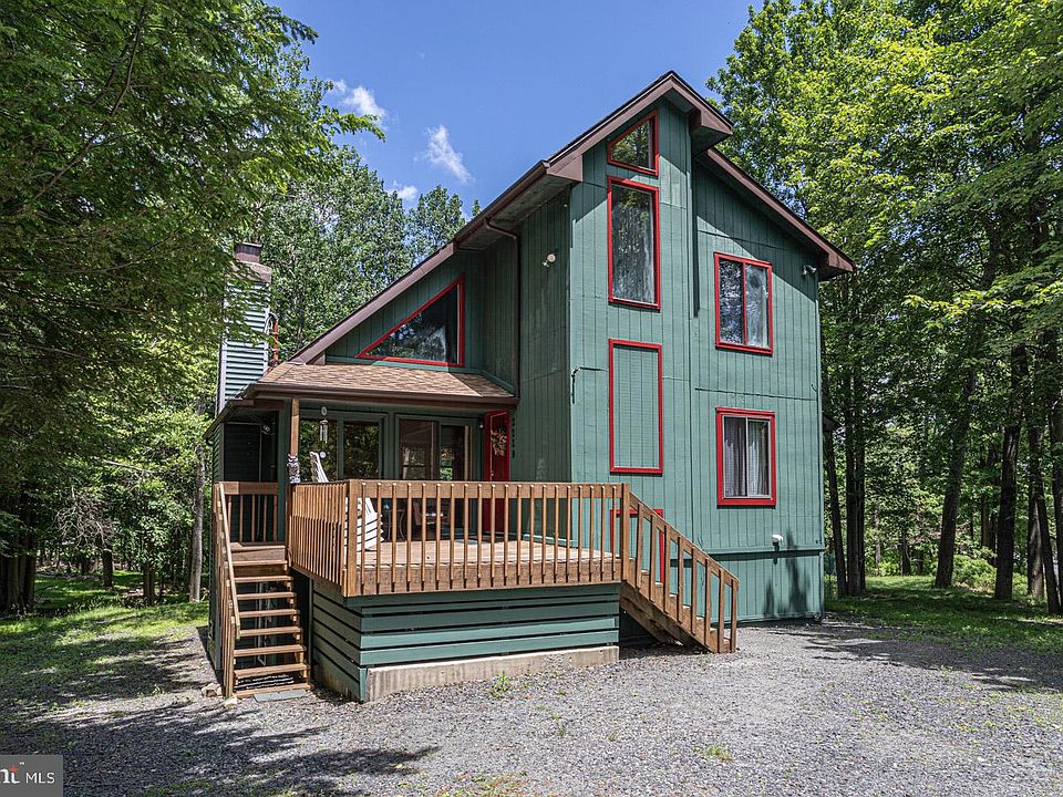 Stunning 4 bedroom Pocono vacation home nestled in popular Emerald Lakes is conveniently located minutes from 940,115, I-80, & the PA Turnpike. The amenities include 5 lakes, beaches, clubhouse/fitness center, golf, indoor & outdoor pool, tennis courts, & community center with snack bar/restaurant. The spacious living room boasts dramatic vaulted ceilings, gleaming hardwood floors, knotted pine accent wall, and skylight. Curl up around the propane stone fireplace after a long day on the slopes! The remodeled kitchen features new cabinets, wide-plank floors, exposed wood beams, butcher block countertops & island with pendant lighting. Step thru the bright sliders onto the four season sunroom overlooking the lush woods. he elegant dining room has exquisite chandelier, gleaming hardwoods,& new windows. The master bedroom is on the main level , with 8 ft ceilings, glistening hardwoods, & gorgeous wooden beam. Convenient full bathroom with shower stall on the main level. The additional bedrooms upstairs are also spacious, and share a full renovated bathroom. There is also a loft overlooking the living room. Don't forget the full walk-out basement, complete with a 4th bedroom, laundry room, and huge area just waiting to be finished as a media/game room! Amazing investment opportunity, with 5-6 car parking and potential to sleep 12+ guests! Don't forget the detached garage! ven more to do at Kalahari, Camelbeach, Camelback, the Crossings Outlets, Great Wolf Lodge, the Shawnee Playhouse, state gamelands, & Mt Airy Casino.