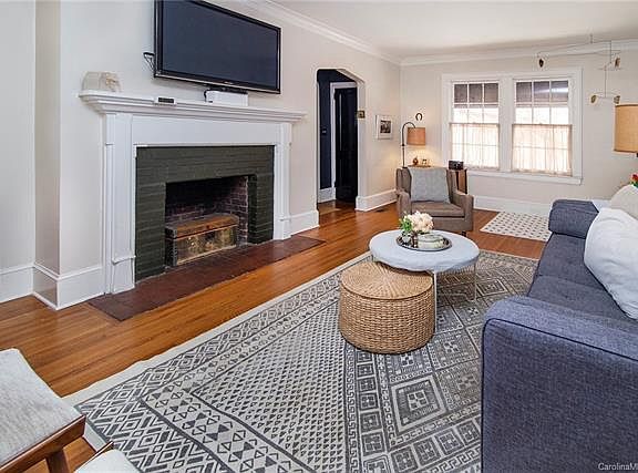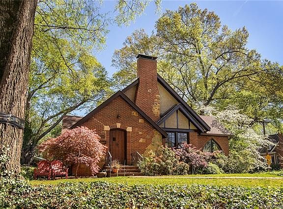 Tudor style brick and stone home located in the heart of the desirable Elizabeth neighborhood. Hardwood flooring throughout home. Numerous dining and entertainment options are within walking distance, including the trolley for a quick commute to the city center, or walk to Plaza Midwood for additional opportunities. The kitchen area has been updated w/stainless steel appliances and granite countertops. This home also features a lovely fenced-in back patio/courtyard area, as well as a garden shed. Two secondary bedrooms are located on the main level. The master suite upstairs provides privacy from secondary bedrooms. An office/sunroom is located adjacent to the living room and features large, original windows that provide plenty of natural light. The wall of windows in the formal dining room provide natural light and a view toward the tree lined streets. Park up to three cars behind the home. The fireplace is sold "as is". Owner is licensed real estate agent in NC.