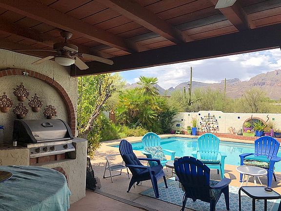 Fully Furnished ! This is a private home in the prestigious central Catalina Foothills area. It is a 3100 square foot southwestern style home at the end of a Cul-de-sac in a quiet neighborhood suitable for walking, cycling and hiking. The house features breathtaking mountain views, gas grill and an enclosed yard with pool. Relax in the secluded Jacuzzi off the Master bedroom suite.There is a spacious living room, family room and dining room. The newly renovated house offers high beamed ceilings, large windows and poured concrete floors. All bedrooms and the study have wood floors. Pool and Spa service, utilities are capped & cable and internet service are included in the rent of one month or more. All linens, towels, cooking and dishware are provided. It is a short walk to La Encatada mall offering high end shopping and gourmet dining . Bike or drive to St Phillips Plaza with restaurants, special events featuring music and wine tasting. The closest grocery store is AJ's Fine Foods in La Encatada. Nearby coffee shops include Starbucks, Nekter Juice Bar and Savaya Coffee Market. Nearby restaurants include Wild Garlic Grill, Tavolino and Fleming's Prime Steakhouse Owners will pay for pool and spa service, utilities up to a cap and WiFi and internet and basic TV.