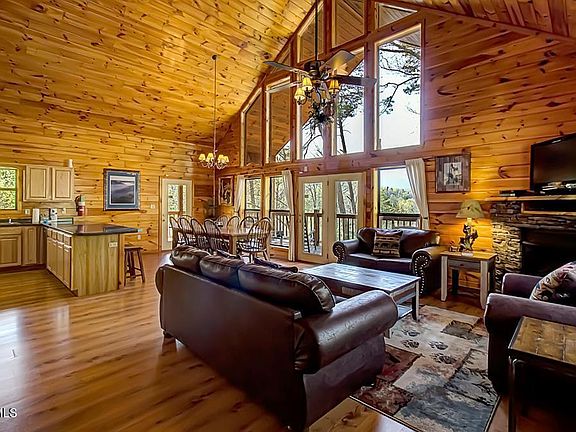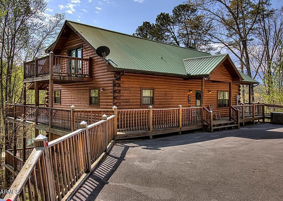 Wonderful large log cabin with an amazing mountain view. $2. 08sq.ft! Outstanding short-term rental. Beautifully furnished and decorated, this cabin has 3 levels, 3 bedrooms 6.5 baths and 3 bonus rooms. Being rented as a six-bedroom cabin. Featuring an open floor plan with vaulted ceilings and a spectacular wall of windows. The gourmet kitchen and large dining area open up to the living room. There are two bedrooms on the main floor, one with queen-sized bunkbed. Across the hall is a large bedroom with a full-size handicap accessible bathroom. A large wrap-around deck encompasses the entire cabin with numerous rocking chairs, two large picnic tables and a swing. The downstairs is just as impressive with another living area,3 bonus rooms, pool table, wet bar with mini-fridge and large entertainment center. The loft (3rd level) has an oversized master suite with private fireplace, private balcony and jacuzzi tub. This is a great opportunity to have a large cabin in an excellent location, convenient to Gatlinburg, Pigeon Forge, and The National Park. Being sold fully furnished.
