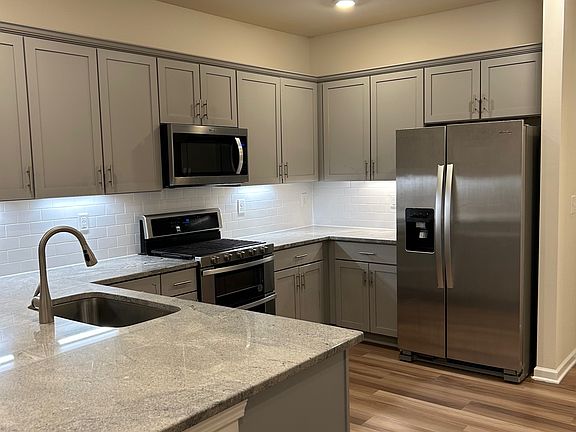 Townhome with 2 stories, 3 bedrooms, 2.5 baths, 2 car rear-load garage. Open first floor design. All bedrooms have a walk-in closet. Kitchen features Stainless steel dishwasher, ice & water dispensing fridge, 5 burner gas range with double oven, microwave, granite countertops and tile backsplash. Washer and dryer also included. Community has pocket park with gas grills. White cabinet LVP designer package.