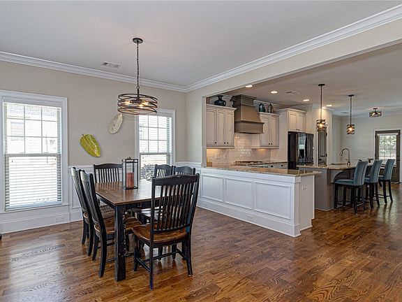 Just like new! Wonderful entertaining floor plan that is a true open concept. Formal dining room opens to the kitchen with beautiful granite counters that provide lots of counter space for meal preparation or large family gatherings. Gas stove and cooktop make this a cooks dream kitchen! Bar stool seating at the island and eat-in table area provide plenty of alternative spaces for dining. The den area includes a gas fireplace and alternative space for the TV screen. Primary bedroom is on the first floor and en-suite bathroom has separate vanities, large garden tub and shower and an enviable walk-in closet. Laundry room and half bath add to the convenience of the first floor. Three bedrooms upstairs share a large bathroom with double vanities. Bedroom 2 has access to floored attic space that has foam insulation great for storage. Outside entertaining is easy with a screened in porch and additional flagstone patio with stone bar area. Black aluminum fencing adds an attractive element.