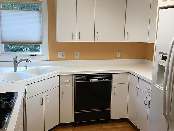 Quiet private street a short walk from Five Points with easy access to downtown. Living room with vaulted ceiling and 6 skylights. Open dining area with pass through to kitchen. Main level master suite, walk in closet and built-ins. Two spacious upstairs bedrooms with full bath and dual vanities. Oversized single garage. Spacious deck with wooded views. Up to two well-behaved pets permitted with non-refundable pet fee. Owner responsible for yard maintenance. Tenant pays utilities. No smoking on property. Single family.