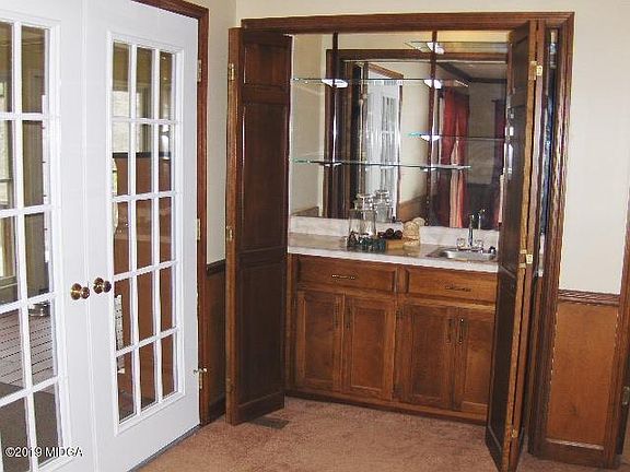 - Carpeted Floors, Attic Storage, Fireplace, Gas Logs, Pantry, Security System, W/D Connection, Walk-In Closet(s), Wet Bar