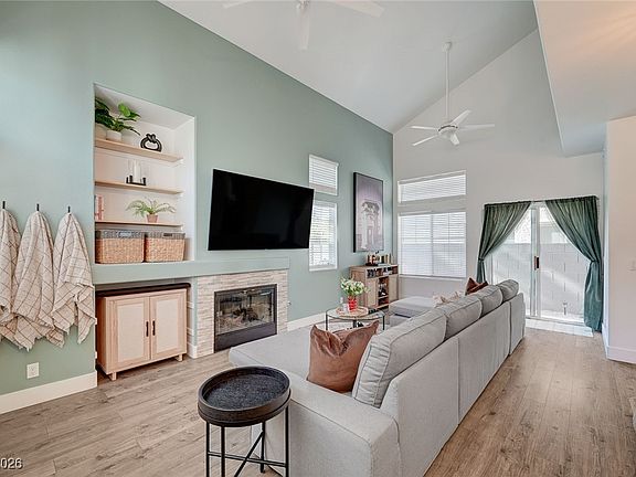 This freshly updated 2 bedroom 3 bathroom home features new floors on the first level, new kitchen appliances, updated bathroom vanities, freshly painted interior and remodeled backyard. This home features a 2 car garage and loft space which is currently used as a studio/office space. The Community has a private pool and fitness center. The gated neighborhood is minutes away from popular dining and shopping area of Green Valley The District. Come see this stunning home that is move in ready!