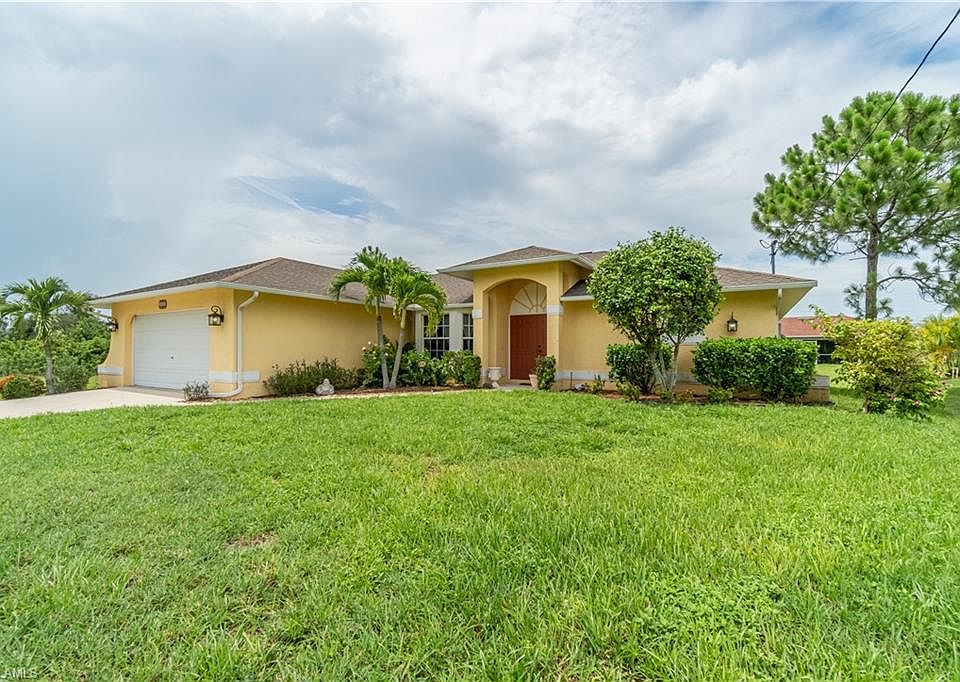 BACK ON THE MARKET! You don't want to miss this opportunity, call and schedule your showing today before this is just another home, SOLD! Come see this charming 1559 square foot home, located in Cape Coral! Just minutes from shopping and dining, this 3 bedroom, 2 bathroom home has something everyone can enjoy. Key features include a 2 car garage, oversized driveway, lawn irrigation, tile throughout the main living space, vaulted ceilings and ample natural lighting throughout. The open and bright living room boasts French door entry, and a formal dining space with bay windows. The kitchen gives you plenty of storage/counter space, a suite of appliances, and a breakfast nook w/ lanai access. The generously sized master bedroom also boasts outdoor access, along with your own private ensuite complete with dual sinks and tiled walk in shower. The large lanai is perfect for entertaining, or cooling off after a fun day of playing in the yard. Click the link above to view the virtual tour!