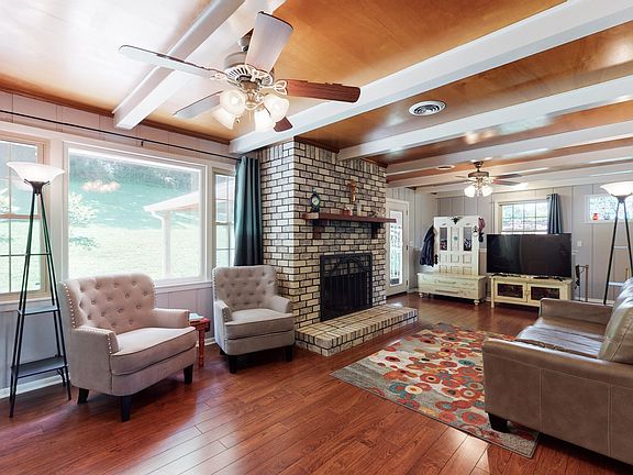 This peaceful 5 acre property has wildlife galore & your very own truffle orchard! 60x40 metal barn on slab w/ water, electric & 10 ft door. Lots of windows & natural light but still plenty of privacy. Main level has 3 beds, 1 bath, dining, kitchen w/ pantry, living room w/ fireplace & a huge front porch. Lower level also has lots of windows as well as it's own LR, kit, bath, 1 bed, office & 2 entry doors! Great space for in laws, teens or it would make an exceptional income producing unit!