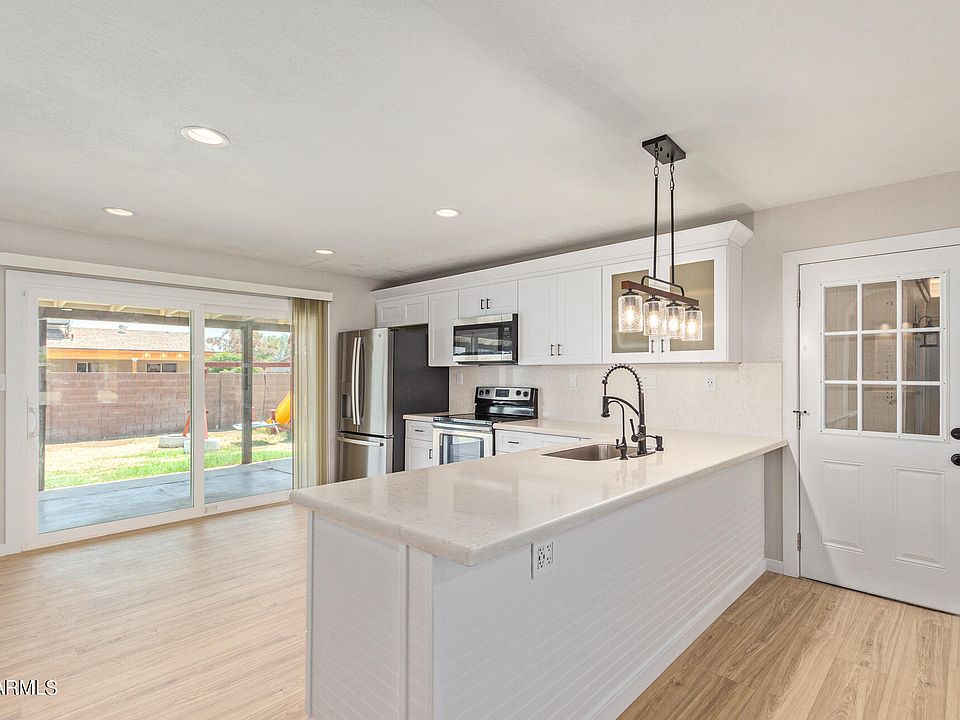 Discover the perfect home for your growing family! Enjoy significant savings on your electric bill with paid off solar panels. The solar is debt free, no balance due. Just enjoy low monthly electric bills. This beautifully remodeled property boasts 4 bedrooms with new ceiling fans in each, 2 modern updated bathrooms, and an additional finished office space with A/C in the garage . The kitchen has been completely upgraded with stainless steel appliances, new cabinets and quartz countertops. With RV gates on both ends of the house and extended slab parking, it's ideal for RV owners. The big back yard comes with a great kids play set. Conveniently located with easy access to the I-17 and 101 freeways, as well as nearby schools, shopping, and dining options. Plus, there's no HOA
