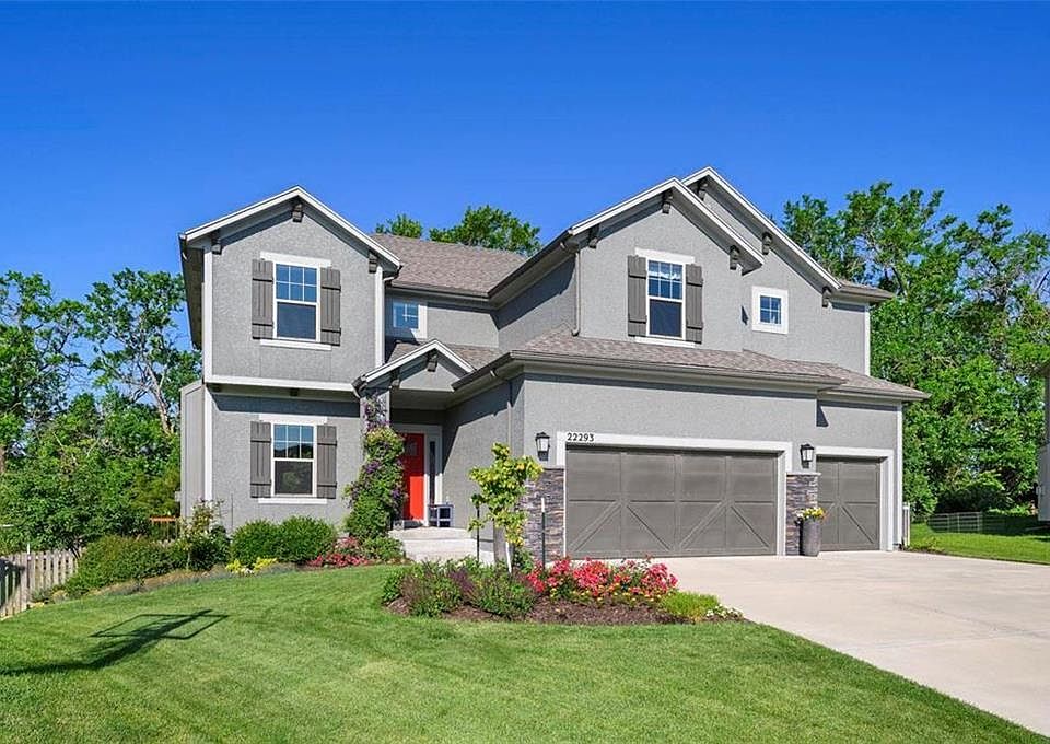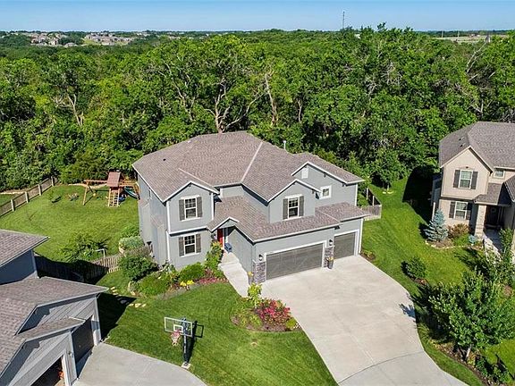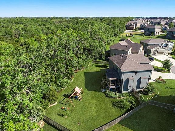 This expertly designed custom home exemplifies the marriage of form and function. Outstanding attention to detail is evident throughout from the high-end upgrades to the well thought out floor plan ideal for family living as well as entertaining large parties! Timeless finishes with clean, modern lines and neutral colors were selected to allow for personalized decor to take center stage. Premium 1/3 acre cul-de-sac lot backs to dedicated green space and features a lush, manicured lawn, mature landscaping, and fruit & veggie gardens. Main Floor Features: Classy, open concept Kitchen with white shaker-style 54? cabinetry, oversized island with seating, granite countertop, and walk-in pantry. Upgraded Stainless Steel Appliances include super quiet Bosch Dishwasher with 3rd rack, GE Gas Stovetop with Convection Oven and turkey probe, GE Vent Hood, and Sharp Drawer Microwave. Wall of picture windows is the focal point of the main floor effectively bringing the outdoors inside! White Oak hardwood flooring and low profile roller shade window treatments further elevate the space. Half Bath is conveniently located just off Kitchen. Bonus room gives you many options: Home Office, additional pantry storage, expanded Mud Room… Built-in “drop zone” for organizing, sorting mail, and charging devices keeps any personal belongings out of sight. Mud Room and closet just inside the Garage give coats, shoes, and bags a dedicated home. Lower Level Features: Finished Walk-Out Basement was professionally designed to maximize function. Wet Bar/Kitchenette with Quartz countertop and generous bar seating includes mini fridge, beverage cooler, microwave, GE Dishwasher, and loads of cabinet storage. Genius 5th Bedroom with En Suite magically converts to additional living space thanks to the custom rolling barn door wall and Murphy Bed! Heated ceramic tile flooring. Home Office with built-in desk. Custom back-lit media wall with repurposed wood from Faxon School in Kansas City, MO. Built-in cabinets and well thought out closet space for extra storage. Family Room features large picture windows and walks out to a covered patio and backyard. Flexible layout design is ideal for house guests as well as entertaining large parties! 2nd Floor Features: Hardwood flooring and iron spindles accent the landing. Spacious Master Suite with 10' ceiling and large windows overlooking backyard green space. Modern Master Bathroom with expansive double vanity, big corner tub, walk-in dual head shower, and walk-in closet. 2nd and 3rd Bedrooms have Jack and Jill Bathroom with tiled shower, and walk-in closets. 4th Bedroom with En Suite. Laundry Room has built-in storage/hanging rack and Washer/Dryer stay! Exterior Features: Home sits in the “bulb” of the cul-de-sac with massive curb appeal! Surrounded by mature perennials adding character and color. Very private backyard is fenced on 3 sides (heavily treed back property line is not fenced). Covered deck off of Kitchen with stairs to the yard. Lower covered patio off of Walk-Out Basement Family Room. Sprinkler system keeps the lawn in tip top shape. Great solar position due to heavy tree row on West side of property. Neighborhood & Community Features: Walking distance to Elementary and Middle Schools. Grayson Place Neighborhood Pool, Clubhouse, and Trails. Neighborhood events hosted at the Clubhouse. Quick and easy Highway access. Near Ernie Miller Park & Nature Center. Outstanding Olathe School District: Millbrooke Elementary School — .8 miles from home Summit Trail Middle School — .7 miles from home Olathe Northwest High School — 2.2 miles from home Olathe Public Schools 21st Century Academies