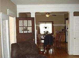REMODLED in 1995, this well maintained home located on a corner lot has beautiful wood floors, updated bathroom, new carpet in the master bedroom, newer appliances, new pellet stove, ceiling fans in livingroom/dining/kitchen/covered patio, built in cabinets, yard fenced and private, additional parking, trees, oversized garage, enclosed hot tub off of back patio, lots of storage. SF per CH record