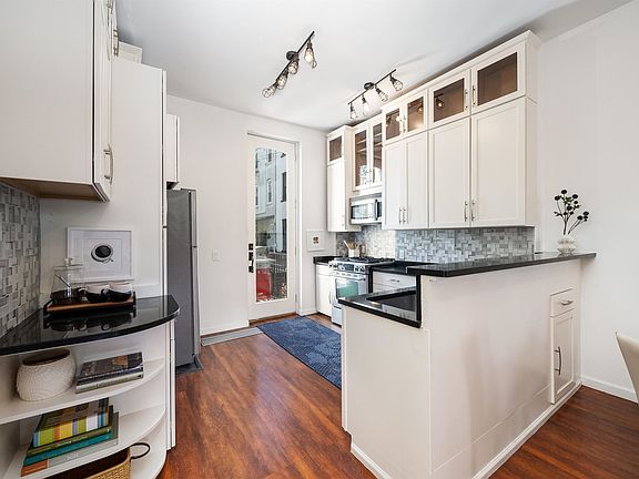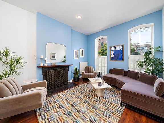 Enjoy townhouse living in this 18' wide 3 family brick townhouse just moments from historic Hamilton Park on one of Downtown Jersey City’s most coveted streets. Easily converted to a single family, this home boasts 4 floors of living and a full finished basement. The owner’s triplex has a gorgeous parlor floor with a blend of modern conveniences and historic details -- soaring ceilings and windows, spacious living / dining, gas fireplace, updated open kitchen with stainless appliances, a deck, and an updated full bathroom. Enjoy your morning coffee on the deck, perched over the sunny professionally landscaped turfed yard. The garden level has 2 generous bedrooms. The primary bedroom has a en-suite bath with marble double vanity and glass shower enclosure; custom closets and direct access to your yard and covered patio. Lower level finished basement with laundry is ideal as a gym, office or playroom. The two income-producing large alcove studio/ one bedroom apartments have original wide-plank hardwood floors, Butcher Block countertops, and in-unit laundry. Collect rent or convert to a huge single family. This home has an ideal downtown location, close to both Newport and Grove St PATH, NYC bus, easy street parking and discounted Newport rental garage for Hamilton Park residents, along with great restaurants, schools and shopping. Lovely Hamilton Park features playgrounds, dog runs, tennis and basketball courts, as well as a farmers market and summer movies.