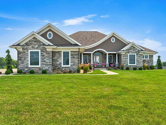 Gorgeous contemporary home built by Noack Construction perched perfectly above Guttenberg offering panoramic views of the Mississippi River. Thoughtfully designed from top to bottom the owners strived to focus on enhancing the river views and quality at every turn. The main floor great room offers a bright space with large windows showcasing river views, hickory wood floors, 11 ft ceilings, custom fireplace. The great room is adjacent to the open dining and kitchen areas featuring alder cabinetry and a beautiful and functional island. Relax in the cozy sunroom or get fresh air on the screened porch with motorized retractable screens. Conveniently located laundry, office, pantry, and mudroom/drop zone checks all the boxes! Two main floor bedroom suites with private baths. Primary bedroom has trey ceiling, his/her closets, spectacular bath with dual vanities, marble floors and shower. Lower level offers a cheery walkout family room featuring in-floor heat, custom fireplace, 2 additional bedrooms, and a non-conforming space great for multiple use. Main floor 3 car garage with air, heat, and epoxy flooring. Extra large capped garage to store cars, toys, and retractable garage door screen! Home is equipped for a gas generator, sound/speaker system and security system setup. This home has been meticulously cared for and will impress and should not be missed!