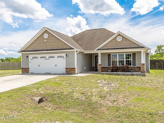 Charming 3BR/2BA home on nearly Half an Acre with Custom Temperature-Controlled Shed! Tucked away on a quiet cul-de-sac with no city taxes, this home offers space, style, and functionality inside and out. Step onto the inviting covered front porch and into a spacious, open-concept living room featuring a cozy fireplace and seamless dining overlooks kitchen and dining area—perfect for entertaining. The kitchen boasts stainless steel appliances, a large pantry, and ample counter space. Retreat to the owner's suite with a tray ceiling, generous walk-in closet, master bath has double vanity sinks, garden tub, and separate walk-in shower. Two additional bedrooms share a full guest bath, and a separate laundry room adds convenience. Enjoy the outdoors with a covered back patio and a private, fenced backyard. Don't miss the custom-built, temperature-controlled shed—complete with luxury vinyl plank flooring and a covered front porch—ideal for a home office, studio, or hobby space. With nearly half an acre, a prime cul-de-sac location, and close to school, shopping and restaurants, this home checks all the boxes!