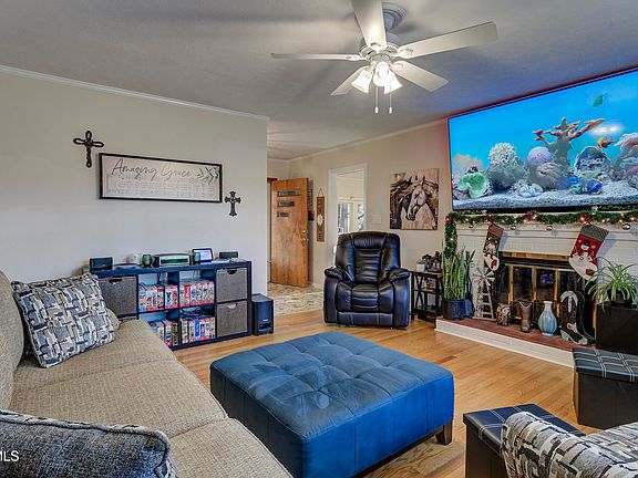 Charming Corner Lot Ranch Home in Greeneville City Limits! This 3-bed, 2-bath home offers one-level living with updated bathrooms, hardwood floors, a newer metal roof, a new hot water heater, updated wiring and new TV over fireplace will convey. Enjoy the fenced yard, covered patio, and stunning views. Don't miss this gem.
