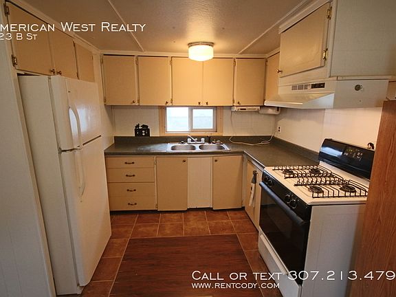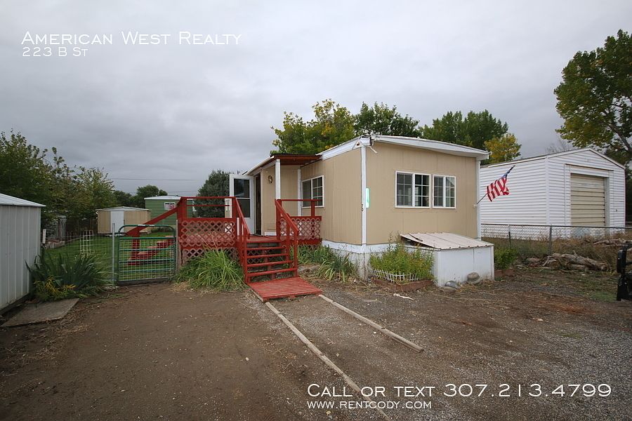 This single-wide manufactured home includes parking for four vehicles, three storage spaces, a fenced yard with good lawn, and a nice deck on front. Updated windows throughout. Forced air heat. Kitchen includes fridge, gas stove, and microwave. Two bedrooms of good size and a bathroom between. Nice washer and dryer included. A pet is negotiable for additional rent. No smoking inside. All leases are subject to a $20 Resident Benefits Package. You can review the benefits under TENANT RESOURCES APPLICATION AND RENTING POLICY or contact the office for more information. _____________________ Information presented is deemed reliable, but is not warranted. Interested parties are responsible for conducting their own inspection to confirm the accuracy, completeness, currency, and status of all information before renting any property. _____________________ General requirements: All occupants 18+ must complete an application $30 application fee per person Submit a government-issued picture ID Prove combined income of 3x monthly rent To see our most updated list of rentals or learn more about our screening process, visit the American West Realty and Management website. _____________________ INVESTORS: are you looking for professional property management or an agent that can help you sell or expand your investment portfolio? Contact American West Realty and Management today to learn about our services! Deck / Porch Fencing Fully Fenced Flooring Tile Flooring Vinyl Plank Heat Forced Air Kitchen Garbage Disposal Kitchen Microwave Kitchen Refrigerator Kitchen Stove / Oven Parking Rv Or Trailer Storage Shed Utility Black Hills Energy Utility City Of Cody (Water, Electric, Sewer, Trash) Washer/Dryer In Unit