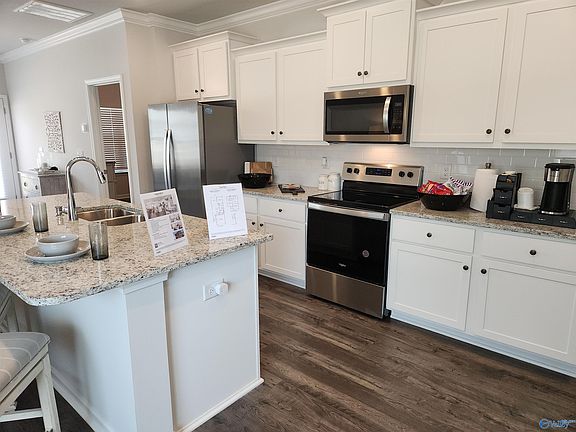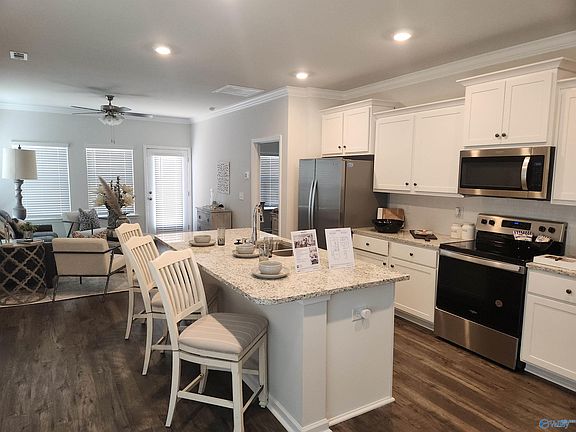 Move in Ready-You will fall in love with this beautiful townhome. The Fairmont plan offers so much easy living with exterior maintenance included by the HOA to include building exterior, lawn upkeep, pest and termite control. You will be taken back by the granite counters in the kitchen, quartz in the baths, LVP floors in main living areas and in the baths and laundry. The owners suite, situated on the main floor, with an en suite bath with 5 foot shower, double sink vanity and spacious closet. Half bath located downstairs for guests. Two bedrooms upstairs with spacious closets and loft area with a full bath. Madison city schools and 5 minutes from the arsenal.