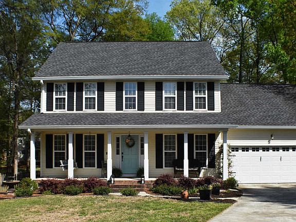 A fantastic layout! This beautifully maintained 4 bedroom, 2.5 bathroom house is so well designed and so comfortable that it will make you want to move in and never leave home. The property has tremendous curb appeal; it sits on a large cul de sac lot and has a charming front porch. Itâs also attractively landscaped and has a sizable, partially wooded back yard. A screened-in back porch, oversized deck, and a pretty stone patio create an idyllic setting for entertaining or relaxing. The interior of the home is just as welcoming. Warm wooden floors carry throughout the first floor living areas. There is a formal living room that would also be an excellent office space, with its lovely mullioned French doors. There is also a spacious formal dining room. A stunning kitchen with granite counter tops, a center island, and pretty white cabinetry is open to a large great room with an equally stunning fireplace. There are two different staircases that lead upstairs to 4 generously sized bedrooms (one is a FROG with a large walk-in closet). The master bedroom has an elegant en suite bathroom with a separate garden tub and shower, plus a walk-in closet. The house is chock full of storage options, including access to the attic and rafters.