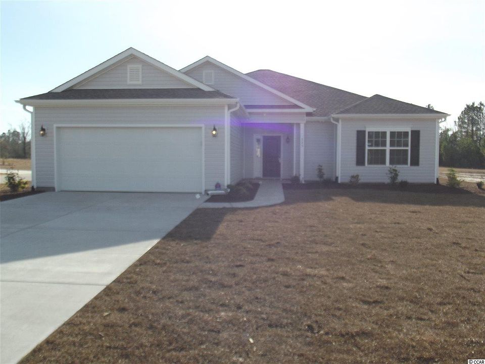 The Hawthorne floor plan with 2nd story bonus room. Lots of upgrades! Granite kitchen counters, tile flooring in kitchen, baths and laundry rooms, comfort height toliet, brushed nickel fixtures and hardware, garden tub and separate shower in master bath with dual vanities, ceiling fan and tray ceiling in master bedroom, ceiling fan in great room, extended covered porch, sodded yard with irrigation system, garage door opener, interior finished double garage. A wonderful location away from the hustle and bustle of the beach! Only 2 minutes from convenience stores, gas station, post office and Food Lion. And the beach itself is only about a 10 minute ride. Pictures are actual home.