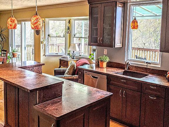 A unique opportunity for those seeking privacy yet I-83 convenience in a beautiful serene setting with a cozy colonial home in the Hereford Zone. The no maint composite deck runs the length of the house overlooking your 5+ acre playground including a natural meadow, woodlands with creek, peach and apple fruit trees. Enjoy sunrises with full southern exposure. Tons of solar potential on both the house and detached garage. The 6 car garage/workshop, fully fitted with electric and water, can host all the hobbies of your choice, large gatherings, or kids indoor soccer game! Within walking distance to the NCR Trail, hiking the Bee Tree Preserve, or Big Trucks Farm Brewery - depending on how you're feeling that day. Fenced in half acre for the gardener, chicken hobbiest, dog lover. Another moon-shaped deck awaits the potential pool, garden pond, or hot tub of your choice. And if all that sounds good..… it comes with a wonderfully cozy 4+ bed / 3 bath home! Professionally re-designed kitchen is the hub of the first floor and features beautiful custom cabinets, stainless steel appliances, granite counters, large island with bar seating, and tons of natural light. A solid brick wood-burning fireplace warms the living room and kitchen nook. The previous 2-car garage has been upgraded to a large finished family room with beautiful electric fireplace, has also been used for a first floor master bedroom suite. Master bedroom with vaulted ceilings, walk-in closet, large 2-section bathroom, and adjoining office space perfect for working from home. 2nd bedroom upstairs is huge: previously 2 standard sized bedrooms with the center wall removed to create one large bedroom. 3rd bedroom upstairs, standard size. The walk-out basement is potential for yet another bedroom and/or a cool club space - just add carpet of your choice. All appliances have been updated with high-efficiency units: kitchen, washer/dryer, water heater, well expansion, AC, and heat pump. This unique property is a blank slate opportunity for all your interests: gardening, entertaining, sport court, car enthusiast, goats and chickens, small business, zen retreat and more. Make this paradise your own!