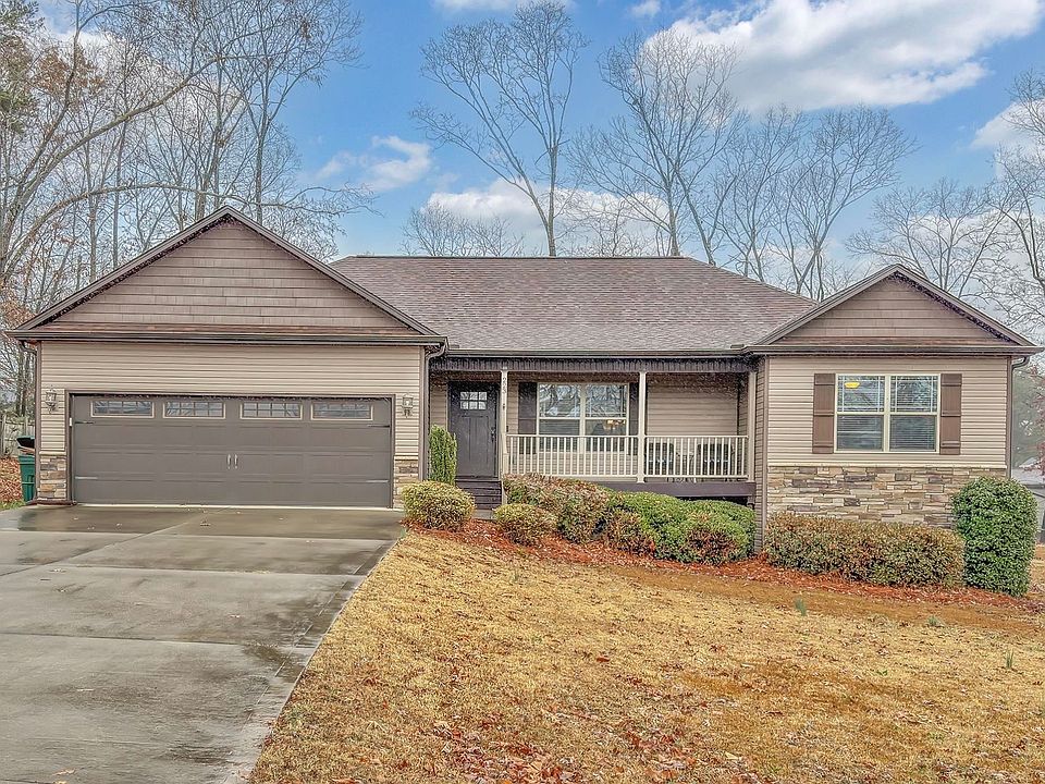 Welcome to 223 Brittany Road. This beautifully maintained 3 bedroom, 2 bath home offers an inviting open-concept layout with hardwood floors throughout the main living areas. The spacious living room features vaulted ceilings and a cozy gas fireplace, creating the perfect gathering space. The kitchen offers granite countertops, ample cabinet storage, and an easy flow into the dining area, ideal for everyday living and entertaining. The owner's suite includes tray ceilings, crown molding, two walk-in closets, and a private bath with dual vanities and a stand-alone shower. Two additional bedrooms and a full bath are conveniently located on the main level on the opposite side of the home as the master. Enjoy outdoor living on the covered front porch or the large rear deck overlooking a spacious yard on nearly half an acre. A 2-car garage provides additional storage and convenience. Built in 2016, this home is move-in ready and located in an established neighborhood with NO HOA. Easy access to I-85, Hwy 29, and nearby shopping and dining. Don't miss out! This beautiful, well-maintained home blends comfort, modern finishes, and convenient location into one inviting package.