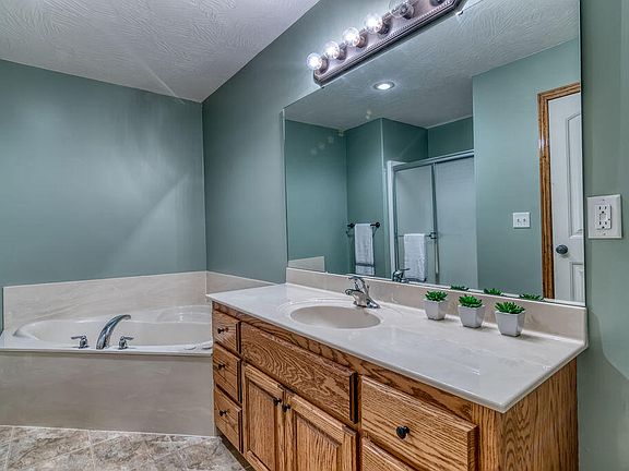 Need space inside and out? This 5 bedroom, 3 bath home provides that! The basement is fully finished including a kitchen area and storage or possible storm shelter. . Upstairs is the main kitchen/dining area with a new sliding door out to the deck. All appliances stay in the home, which includes 2 refrigerators (1 upstairs and 1 downstairs) and the washer and dryer stay too! The living room has a fireplace. Split bedrooms on the main level along with the laundry room.Downstairs is large family room with kitchen, more bedrooms and bath. From here, you can go out the sliding doors to the yard or patio. This home is close to Hidden Valley Golf Course. The last house on the left on the paved road Brownfeather. See it now!