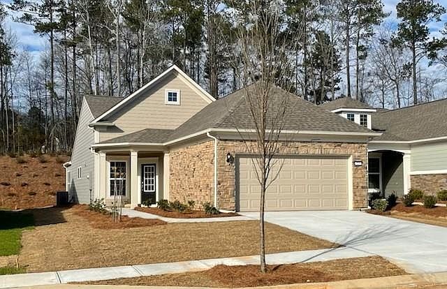 Nestled in one of the Top 55+ Active Retirement Communities, this 2-year-old meticulously crafted, one-level, open-concept home awaits your discovery. This home features a 2-car extended garage, wide-planked hardwoods, and 9 ft ceilings. The white kitchen boasts some custom cabinetry, granite countertops, and stainless-steel appliances. This home is designed for entertaining family and friends. The kitchen overlooks the dining room and great room. The spacious owner's suite offers a stunning bathroom with a double vanity & walk-in closet. The second bedroom is wonderfully sized with another full bath just steps away. The beautiful sunroom enjoys rays of light that dance through the windows. You'll fall in love with the backyard...this private spacious outdoor oasis features a lanai with a shiplap planked wall creating the perfect ambiance to relax in while watching TV or enjoying time in the hot tub (available for purchase). Additional features include a fenced-in area for your fur babies or a perfect area for gardening. This friendly community offers lots of amenities: a two-story fitness center with personal trainers ready to introduce you to all the equipment, plus a walking track and an indoor and outdoor pool. Enjoy the 18-hole ClubCorp golf course and restaurant; the multiple courts for tennis, pickleball, bocce ball, and basketball; a softball field and walking trails. There's even a pet recreation area and playground for the grandkids. There is an abundance of clubs to join, a party to be found, or some sort of event going on. Close to shopping, restaurants, and downtown Griffin. Hurry don't miss out on this well-kept home.