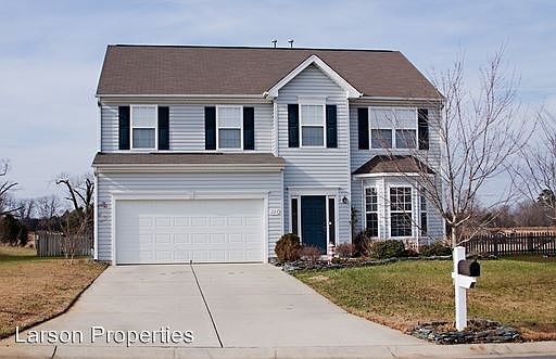 Carson Farms Subdivision - West - Beautifully maintained brick and vinyl home built in 2004 with double car attached garage. LARGE fenced backyard! Wide plantation window blinds First Floor -- 9 ceilings Large great room 16.8 x 15.8 w/gas log fireplace Kitchen 12 x 11 with spacious 12 x 10 breakfast area Formal dining: 12 x 12 Office/study: 10.5 x 10 Half bath Floors: Hardwood, carpet and vinyl Second Level Master bedroom 19.3 x 13 w/his and hers walk-in closets. Master bath w/garden tub, separate shower, raised dual vanities Bedroom #2 (w/walk-in closet): 13.4 x 10.4 Bedroom #3 (w/walk-in closet) 11.6x10.9 Bedroom #4: 12.4 x 10.4 Laundry room: 7 x 6 2 zone natural gas heat/central air City water/sewer/trash pick-up/recycling Cablevision available Directions: Take I/85/40 to Exit 140 (University Drive), go north til you come to Hwy 70, and turn left on Hwy 70, then left on Springwood Church Road, and right into Carson Farms Subdivision West, then right on Brycewood Drive. Home will be on left. Gibsonville Elementary Eastern Guilford Middle Eastern Guilford High School A "No Smoking Inside" rental Where responsible pet owners are always welcomed! www.larsonproperties.info (RLNE2395092)
