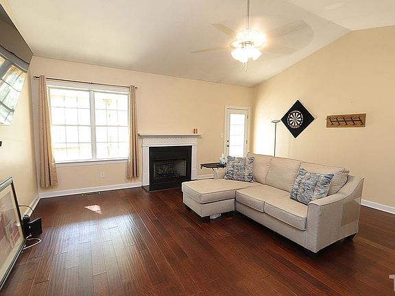 Beautiful split plan ranch home with rocking chair front porch, on 2.87 acres. Located on a quiet cul-de-sac. Nice layout with laminate wood floors & 9ft ceilings, spacious kitchen with gorgeous cabinets open to dining area & family room. Awesome 2 car garage w/side door, and additional parking. Screened porch overlooking fantastic yard!