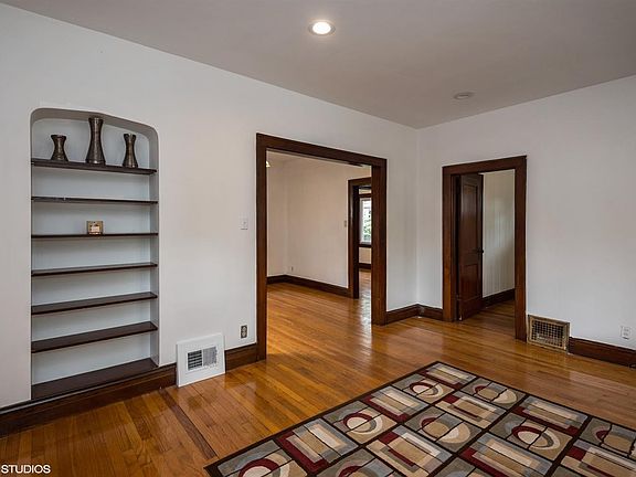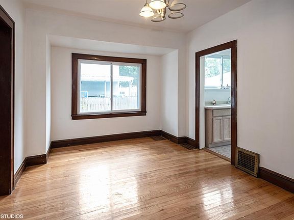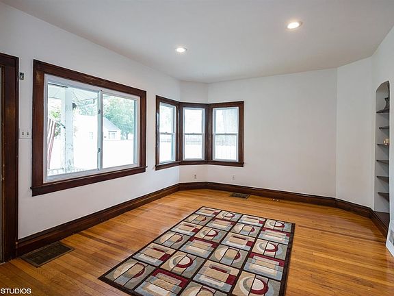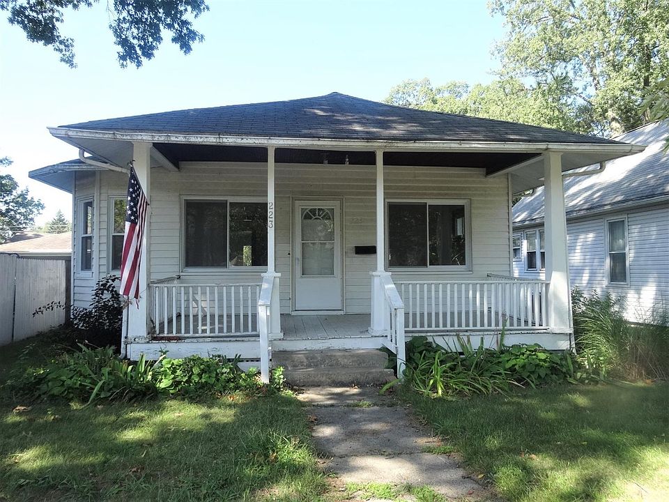REMODELED & READY FOR YOU! This 2 bedroom, 1 bath home offers hardwood floors, dark interior wood doors & trim presenting a vintage charm. Freshly painted throughout plus new items including all windows, stainless Whirlpool kitchen appliances (gas range, refrigerator & dishwasher), furnace, central air and 100 amp service panel. Wonderful living room with charming built-in wall shelf. Formal dining room, kitchen featuring ceramic tile floor, nice cabinet space and built-in dry bar prep area. Spacious cedar closet off kitchen for multi-purpose storage. Full unfinished basement, detached garage with additional storage space attached and nice sized covered front porch to relax & unwind. This home offers the opportunity of moving right in, make your appointment to view today!