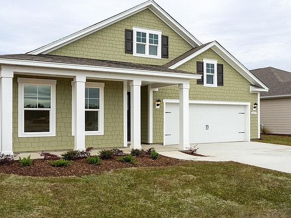 This is America's Smart Home! Lock or unlock your doors, control the the thermostat, and see who is ringing your door bell, all from your smart phone! This is just one of the many features this home offers! The large front porch is perfect for rocking chairs to enjoy the warm coastal weather. A split bedroom floorplan creates a private primary bedroom suite in the back of the home while the open concept kitchen, living, and dining areas are perfect for entertaining! Granite countertops, modern painted cabinets, stainless Whirlpool appliances with a gas range, and gorgeous wide plank laminate flooring throughout the main living areas. There is also a flex room on the main level which would be great for a home office or formal dining room. *Photos are of a similar Darby plan. (Home and community information, including pricing, included features, terms, availability and amenities, are subject to change prior to sale at any time without notice or obligation. Square footages are approximate. Pictures, photographs, colors, features, and sizes are for illustration purposes only and will vary from the homes as built. Equal housing opportunity builder.)