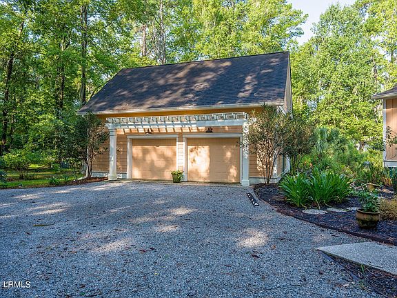 A beautiful Lowcountry home on one of the larger lots in the gated community of Callawassie Island. The home sits on 1.13 acres on the marsh. The front entrance welcomes you into the large living area with 12 ft ceilings and a view through to the back screened porch and on to the marsh. The split floor plan allows for privacy with the primary suite separate from 2nd and 3rd bedrooms. A gorgeous butler's pantry with glass door cabinets is off of the huge kitchen with a gas cooktop and large island - a wonderful place to gather family and friends. Heart pine and tile floors are throughout the home. A bedroom with a full bath and sitting area are above 2 car and golf cart, detached garage. The house is equipped with a whole house Generac generator. The HVAC system was replaced in June 2023. The crawlspace has been excluded to prevent intrusion by any critters! Callawassie Island requires membership in the club with access to 27 holes of golf on a championship golf course, 4 community docks, 2 clubhouses, 2 pools, tennis and pickle ball courts and fitness center.