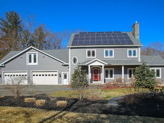 Executive colonial sited on over 1.3 acres bordering 17 acres of conservation lands. Hike off your property on Parsons Brook Conservation area or relax in your professionally landscaped backyard with fire pit, waterfalls, 35/70 yd tee boxes w/ synthetic putting greens and 18x36 inground saltwater pool and pool house w/ kitchen. The expansive main residence offers a balance between open concept entertaining, yet offering quiet, cozy areas when needed. Bonus spaces include a 4-season sunroom, home gym, media room and for the ultimate in game day gatherings, the third floor has an expansive entertainment room with custom 8-person wet bar, three tv's, and pool table. High level technology with Solar, 17kw backup generator, 52 speakers in/out Sonos system and whole property security system.