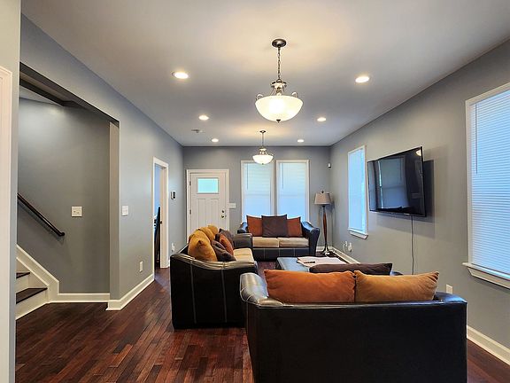 Please click here to apply You'll love this home Totally upgraded house. UPCOMING improvements to the yard with added landscaping. This home is similar neighbors to a duplex and share a sidewalk and huge backyard. You'll love the private deck facing the wooded area. The main level has a bedroom off of the living room. There is a full bath on the main level. This eat in kitchen features stainless steel appliances, corian countertops and custom cabinets. There is access to the deck and yard from the kitchen. The upper level has 3 bedrooms and two full bathrooms. There is a stackable W/D on the upper level as well. Recessed lighting and ceiling fans through out. DOG FRIENDLY - Up to 2 SMALL dogs under 40lbs welcomed. This home will move quickly so call today.