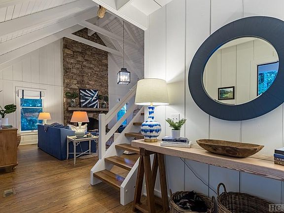 This adorable yet sophisticated cottage underwent a massive head-to-toe remodel and expansion in 2020. The living room is anchored by a beautiful stone floor to ceiling wood burning fireplace. Screened and open porch takes in the peekaboo view of Whiteside Mountain. Painted wood paneling and handsome wide plank wood floors carry throughout the house, and there is tile flooring in the mudroom and upstairs bath. The kitchen has newly cased openings creating an excellent connection to the common area of the house. Gorgeous white appliances, brass hardware and specialty lighting enhance this space. Large dining room just off the kitchen. The master bedroom has a vaulted ceiling, large closet and bright bath with double vanities. The main level guest bedroom is nicely separated from the master bedroom. Upstairs, the addition of two shed dormer windows created a large loft bunk bedroom with its own private bath and closet. At present this room is open to the living area below, but with very little effort (a window, a door, and a short section of wall) could be closed off to make a "real" large bedroom. New roof, new HVAC, generator, new exterior lighting, new everything! This home is very convenient to the clubhouse and has an easy on-grade driveway.