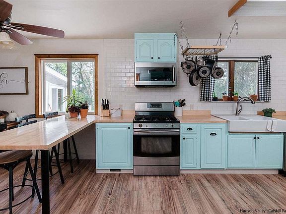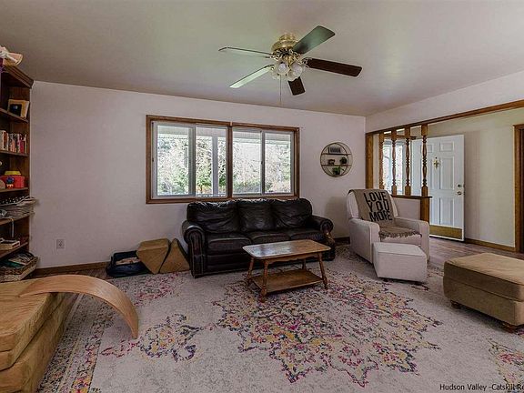 On a quiet country road, your new sun filled ranch with endless potential awaits. Enjoy your coffee on the back porch listening to the birds, or relax with your book each evening in the sunroom. The expansive yard with flowering perennials, provides a peaceful and private setting that is ripe for reimagining. Add a pool, a fire pit, a hammock, a bocce court - whatever you desire! Additional out building behind the house would be a perfect seasonal art or yoga studio, teenage hang out or shed. Updated kitchen cabinets, countertops, appliances, flooring, deck and roof were completed in 2017. There are views of the coveted Gunks accessible with a light clearing and trimming of trees in the backyard. Close to Westwind Orchard, Arrowood Brewery, LoveBird Catskills, swimming, hiking and climbing in Minnewaska State Park and Mohonk Preserve, and everything else the Catskills and the Hudson Valley have to offer. Dream your upstate dream into reality in this idyllic setting.
