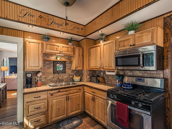 Charming two-bedroom bungalow with an updated country kitchen and enclosed front porch. This beautiful Amsterdam home offers 2,103 gross internal living space with 1,152 square feet being heated. With the bedrooms, bathroom, and laundry room being on the main floor all you have to do is move in. Go upstairs to find a large, finished living space that can be used all year. Currently unheated, and once used as a bedroom the hook up for the heat is readily available. Step out to the backyard to find an Oasis. You can enjoy a cup of coffee on the back deck that is conveniently located off the kitchen, or a dinner under the covered patio, if it is too warm, enjoy a dip in the brand-new above ground pool. This home is minutes away from shopping centers, Shuttleworth park, and restaurants