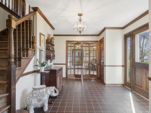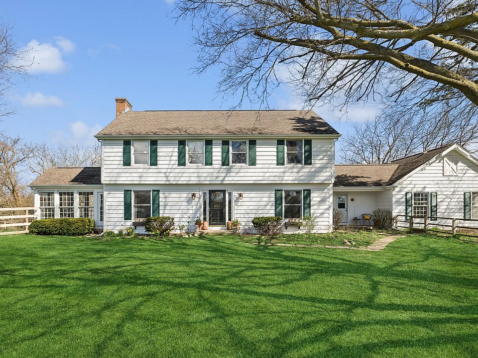 Multiple offers! Highest and Best Offers due Sunday 4/21 at 1:00. Imagine waking up every day to a private sanctuary, away from the hustle and bustle of town and enjoying the tranquility of this sprawling equestrian oasis. Lush grassland, pastures and trees surround the entire property with stunning and unique elements, including medicinal herbs and wildflowers and a regenerating heirloom vegetable garden (see attached for the complete list of plants and trees). Walk the grounds and bask in this one-of-a-kind estate that utilizes permaculture & regenerative farming techniques. Situated on 5 acres with a 5-stall barn and 7 sprawling fenced areas, it is a masterpiece of unparalleled beauty. Equally impressive is the home's interior that embodies a true American farmhouse, modernized for 21st-century luxury. The home is sun-drenched with hardwood flooring, barn doors and a rustic elegance throughout. The exceptional kitchen has been updated to perfection with velvet quartz countertops, stainless steel appliances, center island, farm sink, recessed lighting, custom backsplash & a sliding door to the deck. The family room features a cozy fireplace with all brick-surround, a wet bar and 2 additional sliding doors to that same outside deck. Even more sliding doors can be found in the spacious living room. The home seamlessly blends indoor and outdoor living space at every turn. The living room also boasts a wood burning fireplace and connects to the inviting 3 seasons room. This incredible space showcases vaulted ceilings and floor-to-ceiling windows, allowing you to admire the rolling countryside and picturesque views. From here, it is just a short walk to the barn and chicken coop. The main level also features a dining room, charming half bath, laundry room with a sink and a mud room. Upstairs you will find 4 generously sized bedrooms with ceiling fans and hardwood flooring. The primary suite has a lavish walk-in closet and an exquisite remodeled private bathroom with a dual vanity and large walk-in shower. The second full bath has been updated as well. Endless storage space in the unfinished basement that can also be utilized as a gym, workshop, you name it! The incredible deck connects to almost every room on the main level for the ultimate convenience as well as a terrific area to entertain friends and family. It provides a constant backdrop of the pastures, offering moments of awe and serenity that enrich daily life. Breathtaking sunrises and sunsets can be enjoyed year-round with horses grazing in the distance. Recent updates include: AC (2022), furnace and Aprilaire humidifier (2016), updated kitchen & bathrooms, new washer & dryer, updated ceiling in the 3 seasons room, new gutters, updated landscaping, recent exterior painting and MUCH MORE. Ride right out of the barn to enjoy endless miles of forest preserve trails, riding club trails,. and within walking distance to the Riding Club of Barrington Hills, a coveted location that hosts friendly community gatherings like Sunny Sunday Breakfasts, bonfires, holiday parties and equestrian events like trail rides, equine related educational demonstrations, and the LeCompte/Kalaway Trailowner's Cup. Keep in mind that all forms of livestock are welcome on this terrific property. All this, plus an award-winning school district, easy access to the Metra and expressways. The perfect blend of country living and privacy that also offers the close proximity to shopping, dining and everything the wonderful village of Barrington has to offer. Low Cook County taxes! Don't miss the opportunity to acquire this truly magnificent estate!