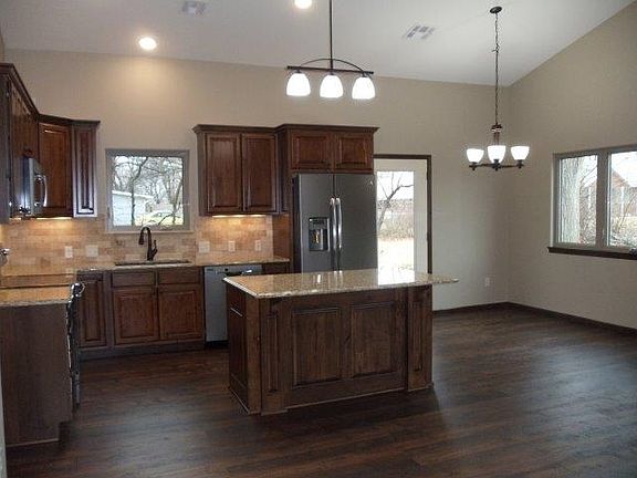 Lovely 2 bedroom/2 bath 1/2 duplex located just 20 min. W of Wichita and in the highly rated Cheney School District. Front door opens to a spacious kitchen/living room combo with a vaulted ceiling. Kitchen has granite counter tops, pull out drawers in lower cabinets, and lazy Susan storage in lower and upper corner cabinets.Kitchen cabinets are Knotty Beech and floor is 100% Waterproof Vinyl Planking. Bedrooms are carpeted and bathrooms have tile flooring. Nice size laundry room with cabinets and hanging bar. Seller is installing a sprinkler system and seeding the yard in the spring. Seller will install a wooden privacy fence on the south side of the duplex along the tree row. Cheney offers easy access to the highway, but still retains the country feel for a small town community. Cheney boasts 5 eating establishments, a golf coarse, 3 exercise/workout facilities, a dentist office,a medical facility/doctor, chiropractor office, pharmacy, library, 2 beauty shops and 1 barber shop, an active and successful Recreation Commission, and it is home to the Sedgwick County Fair. Don't miss the opportunity to view this amazing property in a progressive and upcoming community..