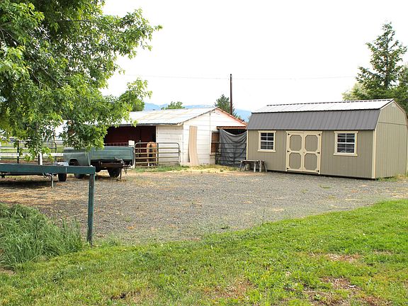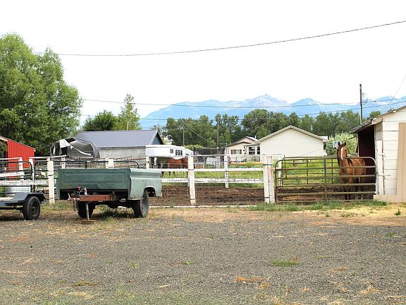 Pride of ownership! Country home located On 1.52 acres. Perfect setting for a hobby farm. This home has a skylight that brightens up your living area, 1649 sq ft, 3 bedrooms, 2 bathrooms and was built in 1949.There is a covered front entry, covered back patio, attached 2 car garage w/ work benches, Lg insolated 12X24 storage shed, barn w/ 2 stalls, storage, tach room and corrals for your animals. Property is fenced, has 2 kennels for your dogs, 5 apple trees and irrigation rights.