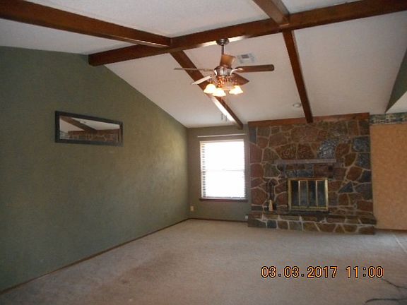 Here is the 4 bedroom, 2 bath home in Richmond School District that you have been waiting for! Large, vaulted ceiling living area with rock fireplace, partially updated kitchen, huge master with great walk-in closet & a split bedroom arrangement too! Outside is a covered patio, storm shelter & a great storage building as well. This is a great family home in a great area with a community Swimming pool!