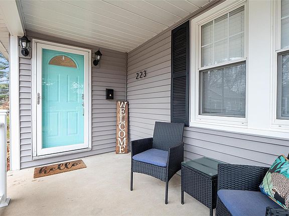 Wonderfully renovated and charming Webster bungalow. The covered front porch welcomes you into the spacious front living/dining room. The kitchen has been updated with custom cabinets, granite countertops and a breakfast bar that opens into the family room with a full floor to ceiling masonry gas fireplace. The family room looks out to a new patio and very large, fenced back yard. The oversized one car garage completes the backyard. Two spacious bedrooms with custom wallpaper and a recently updated bath finish off the first floor. There is a rec room in the basement perfect for an office, tv room, or extra guest space. The whole house has plenty of other updates including fresh paint, refinished wood floors, new light fixtures, garage door, and brand new furnace.