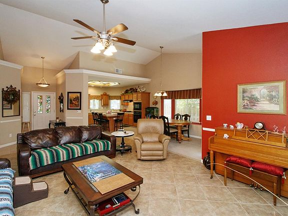 This home has drive by appeal, and it gets better as you walk up to the front door, along lush landscape, inviting porch with the view and sound of the 2 tier water fountain. Many up-grades to this lovely home, a complete list is available. Added concrete, including full patio (with wood slatted roof), along side of house and extra 3 feet to driveway. Newer flooring in family room and bedrooms. Kitchen cabinets have custom pull out drawers for pots and pans, and slotted panels for cookie sheets. Master Suite is wired with surround sound and has an added doorway for privacy, separate tub and shower and walk in closet. 4th bedroom has its own outside entry door, would make a great Mother-in-law set up, daycare or office from home. Newer ceiling fans and custom storage cabinets in the garage. Check out this move in ready home today.